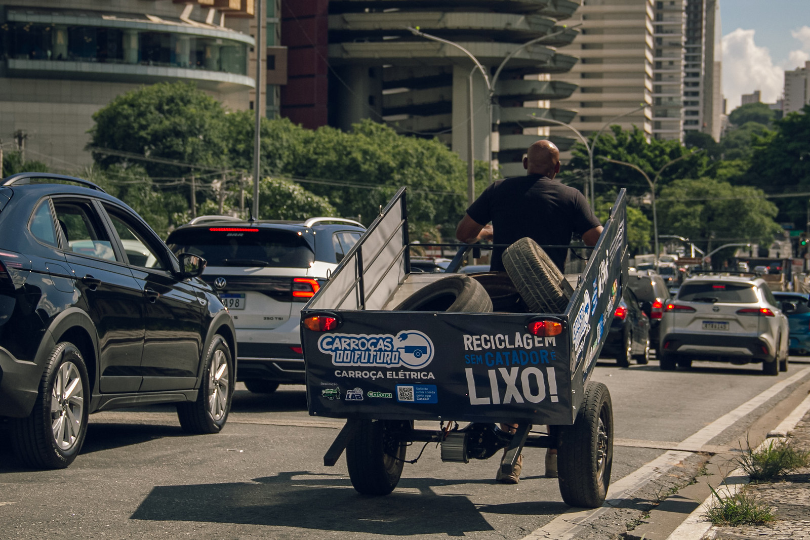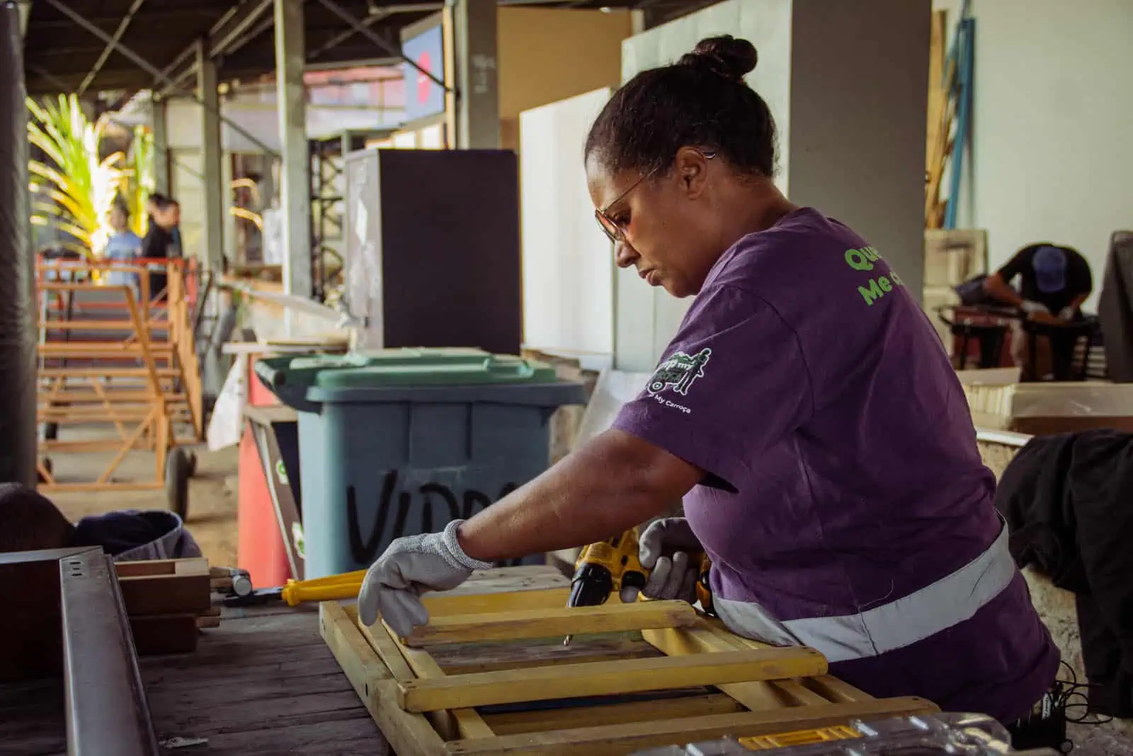 Criação de protótipos baseados no uso de energias renováveis, como alternativa a tração humana, de baixo custo e potencial de escalabilidade. Projeto de inovação com impacto direto na qualidade de vida, condições de trabalho e geração de renda das catadoras e catadores. Carroças de bambu, elétricas, de plástico reciclado ou triciclos elétricos são produzidos e entregues para catadoras e catadores testarem.