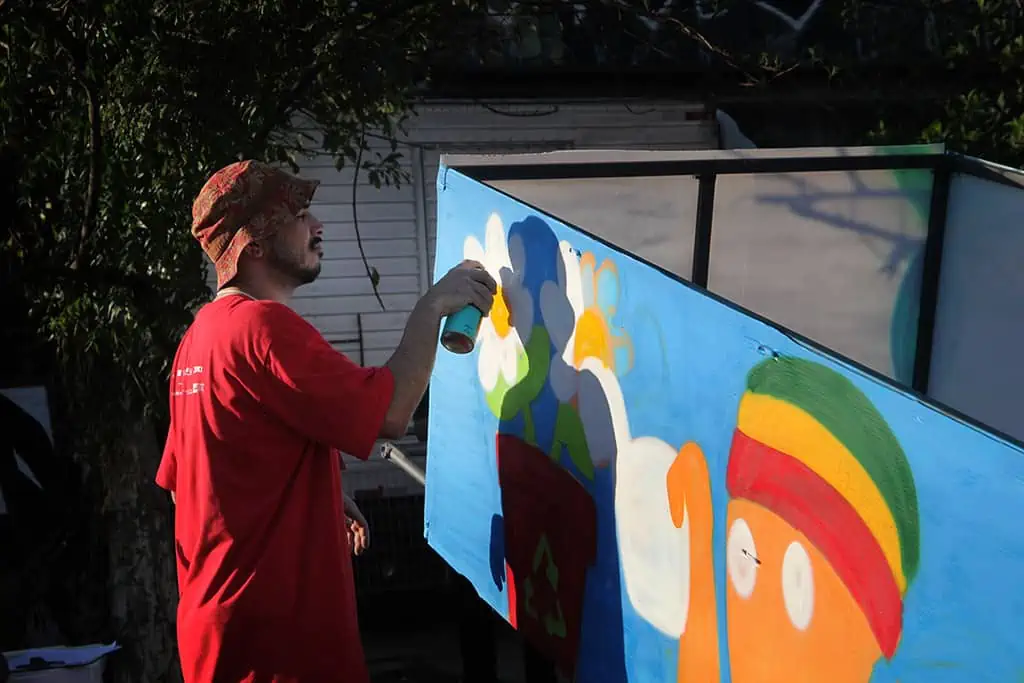 Nessa ação do Pimp My Carroça, fazemos a reforma estrutural das carroças/ carrinhos e a pintura artística chamando artistas da região para atuarem no evento.